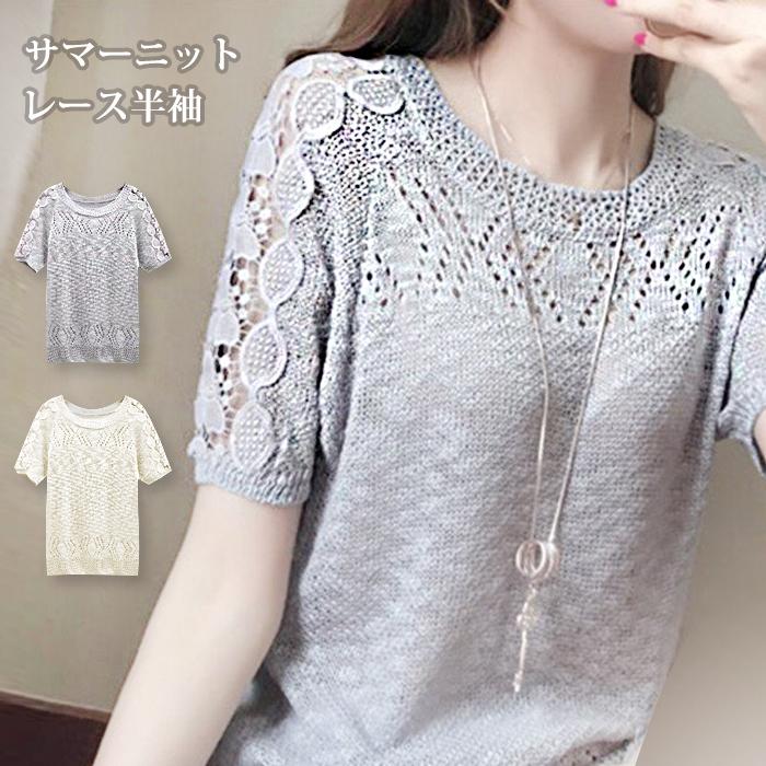 サマーニット 春 夏 レース 半袖 丸首 薄手 花柄 レディース セーター 編み 可愛い 透け 無地 秋 透明 柔らかい ニット トップス 473 A B 通販 Yahoo ショッピング